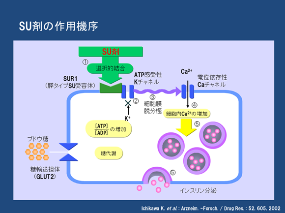 スルホニル尿素薬の心臓への影響 5/19 投稿者: 神内 謙至投稿日: 9月 19, 20258月 15, 2025 ATP依存性カリウムチャネルにはSUに結合するSU受容体(SUR)が存在し、この受容体にSUが結合することでカリウムチャネルが閉鎖するのです。